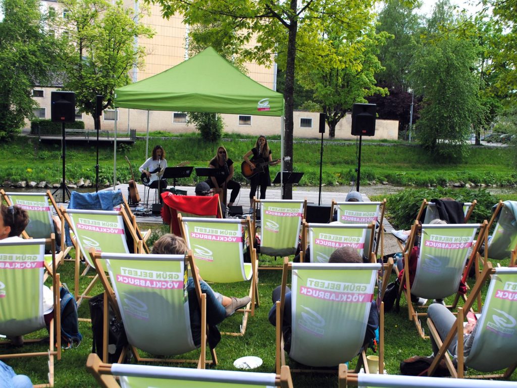 Tolle Stimmung gab es am Picknick-Nachmittag im Wasserpark an der Vöckla der Grünen. Die Musik von „Selfsupport“ begeisterte. Abseits vom Mainstream spielte die Eferdinger Akustik-Band (Silke Knoll, Doris Bauer und Charlotte Aschauer) kraftvolle Covers und eigene Stücke. Gut genützt wurden die „Slack-Lines, Kinderspielgeräte, Liegestühle zum „Chillen“ und der Bücherflohnmarkt von amnesty youth.